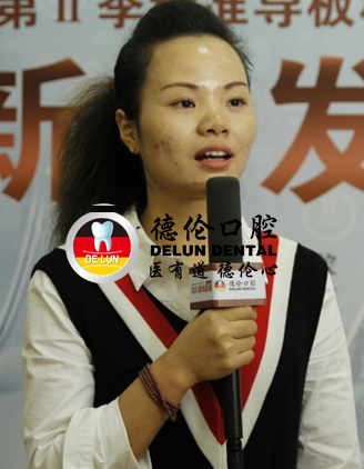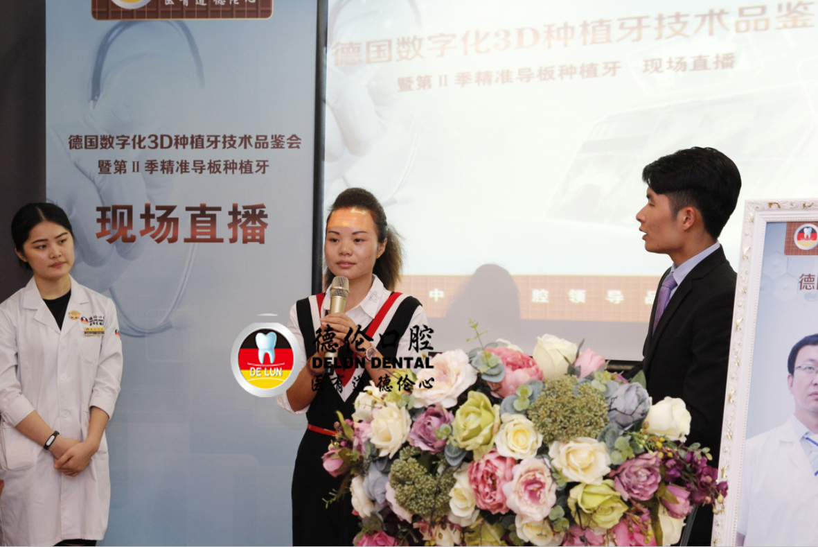 在11月14日舉行的德倫口腔“首屆3D導板數(shù)字化種植牙真人直播”的現(xiàn)場,一個年輕的身影的走上了舞臺,她正是德倫口腔3D導板數(shù)字化種植牙的受益者之一鄒女士。當鄒女士聽聞程武醫(yī)生要進行種植手術直播的時候,她主動提出希望可以到現(xiàn)場分享她的種植感受,用自己真實的經歷來發(fā)聲,呼吁年輕人有任何牙齒問題都需要及早治療,不要以為能拖就脫,結果錯過治療黃金期。