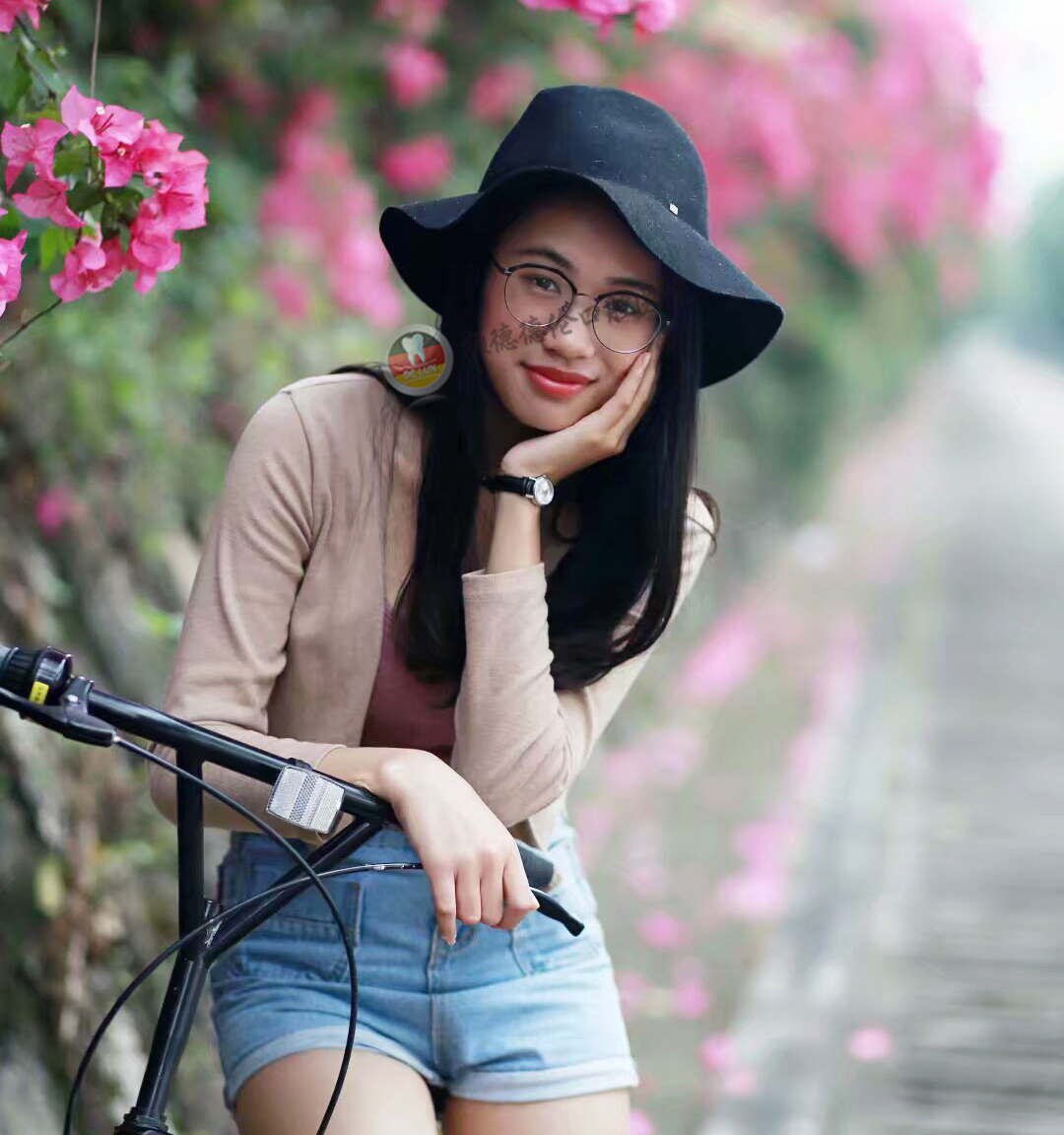 笑的時(shí)候很怕露出牙齒,拍寫真,只好抿著嘴。